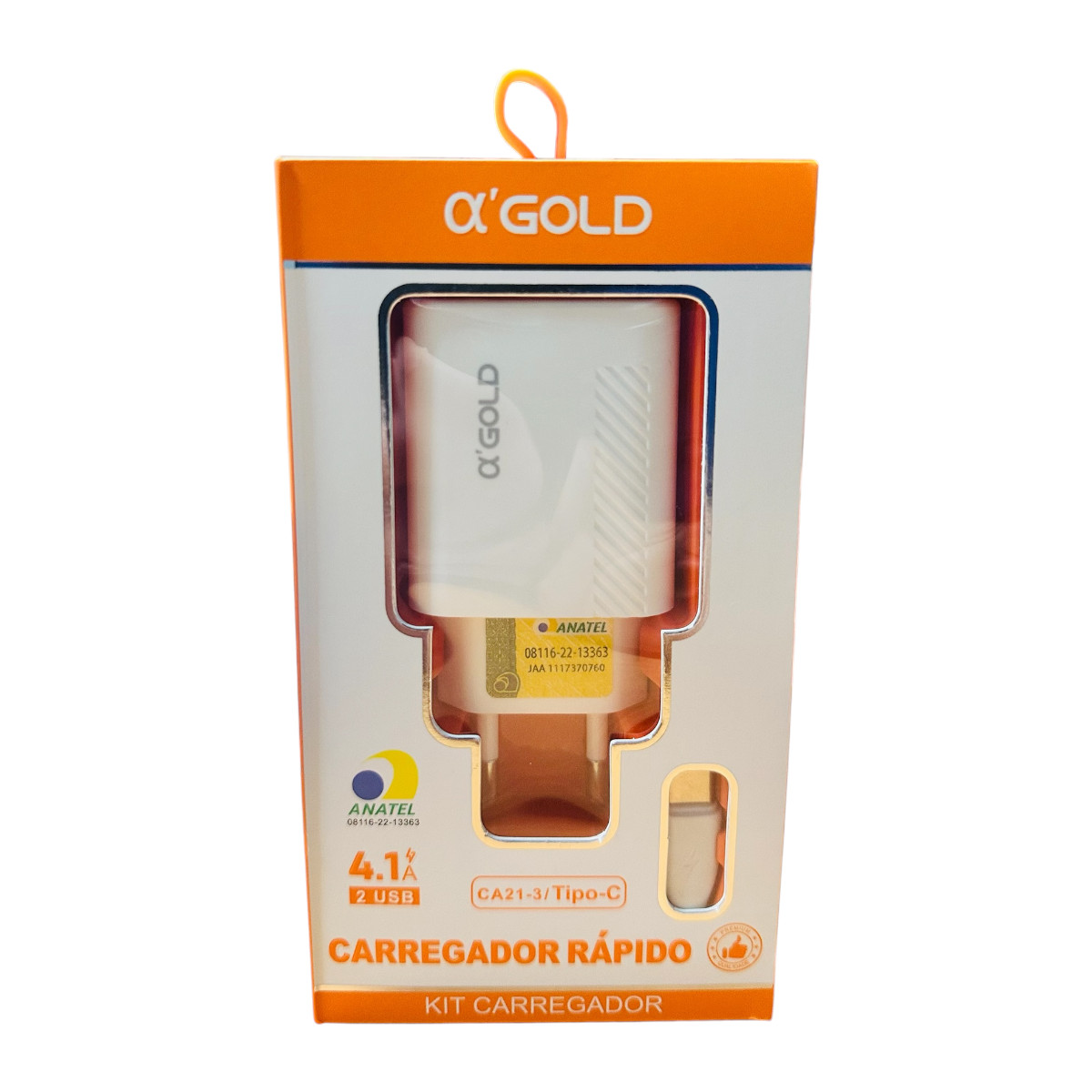Carregador A'Gold Tipo-C 4.1A 2 USB CA21-3 Anatel