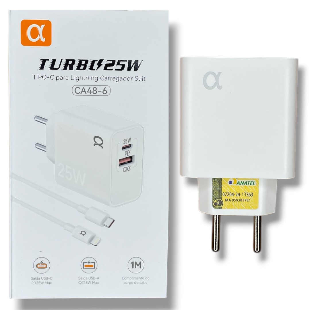 Tipo de Carregador: Fonte turbo USB-C com cabo Lightning