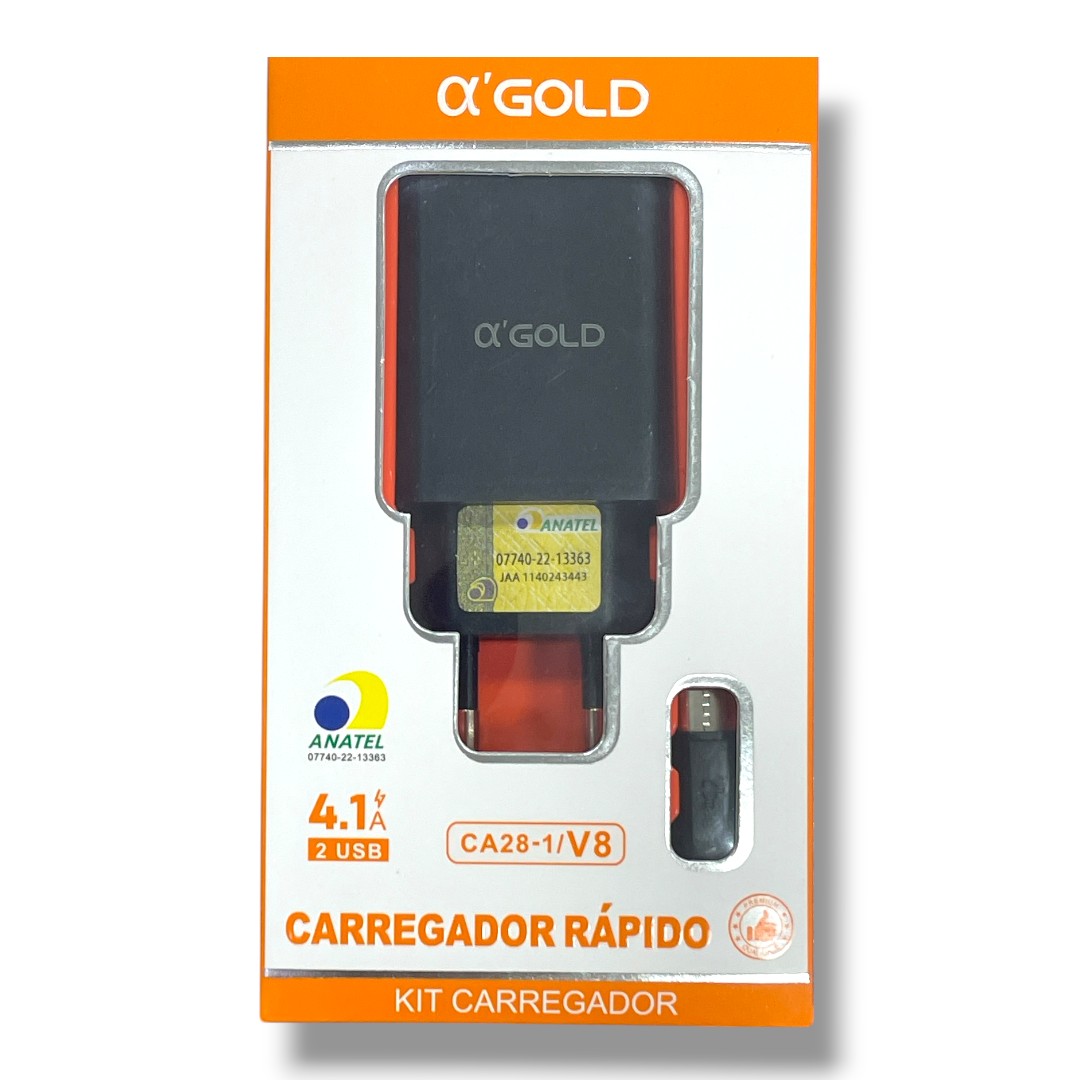 Carregador A'Gold V8 4.1A 2 USB Preto CA28-1 Anatel