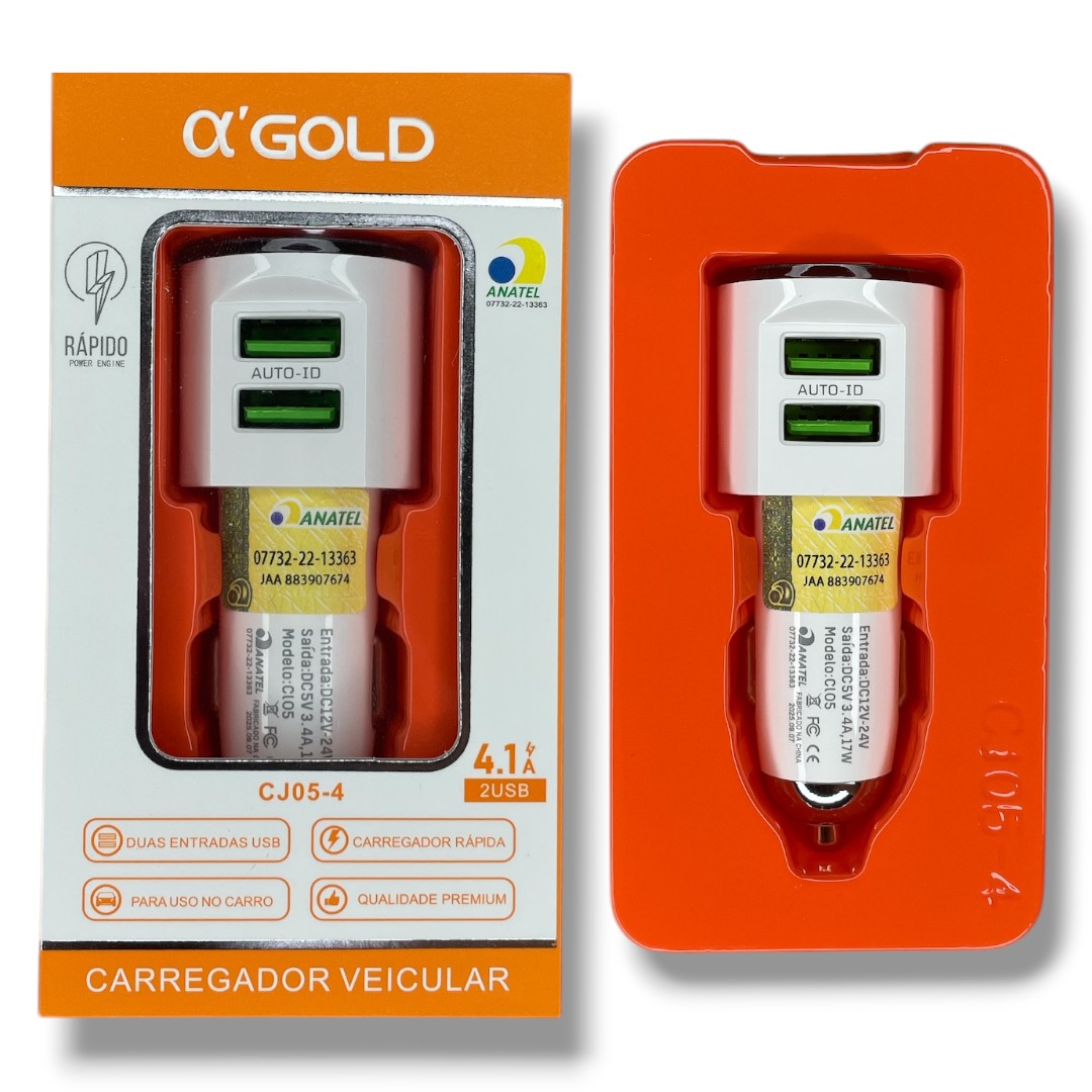 Carregador Veicular 2 USB 20W 4.1A A'Gold CJ05-4